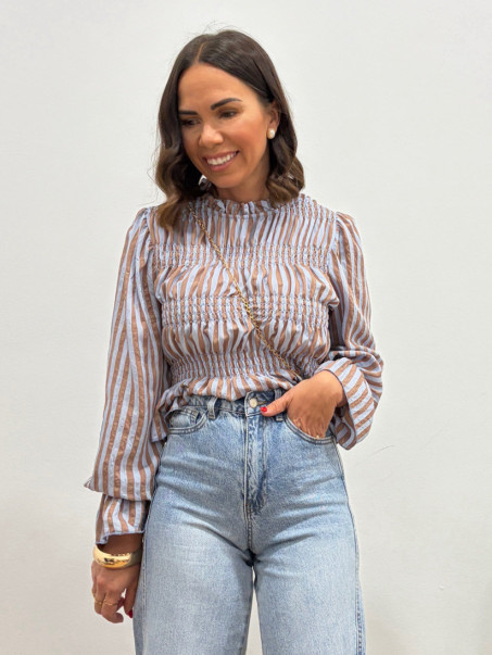 Camisa rayas celeste y marrón