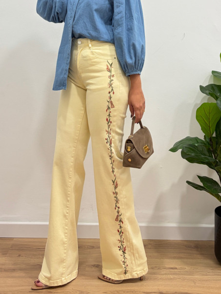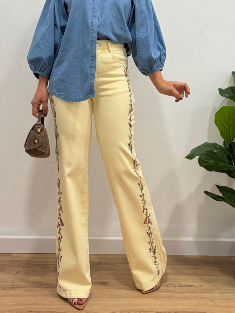 Vaquero amarillo bordados laterales