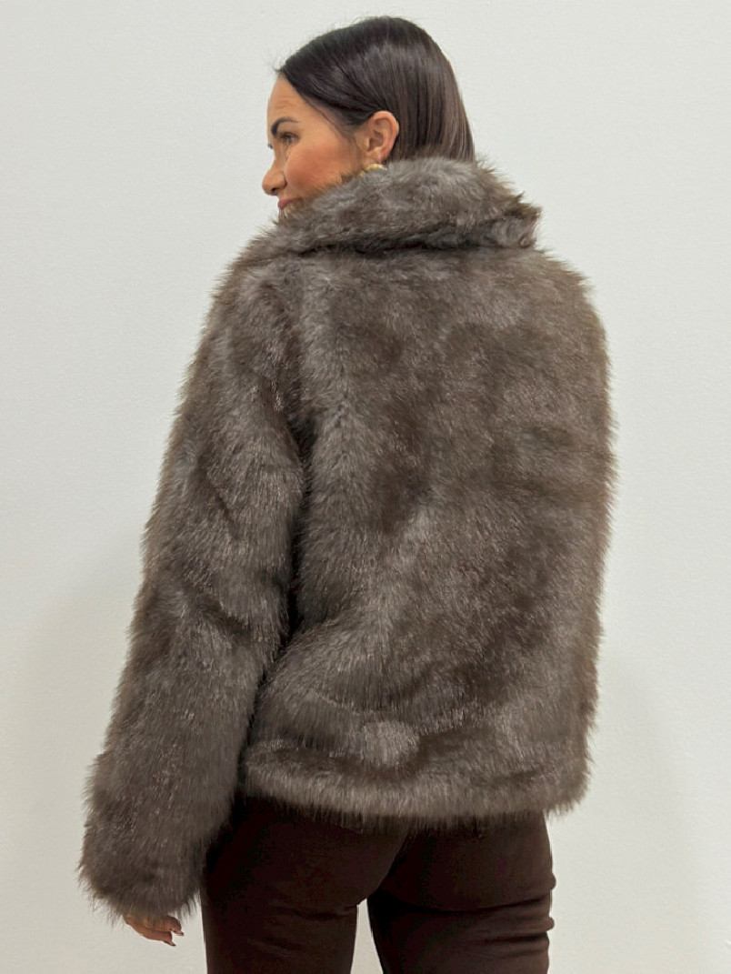 Abrigo pelos marrón y gris