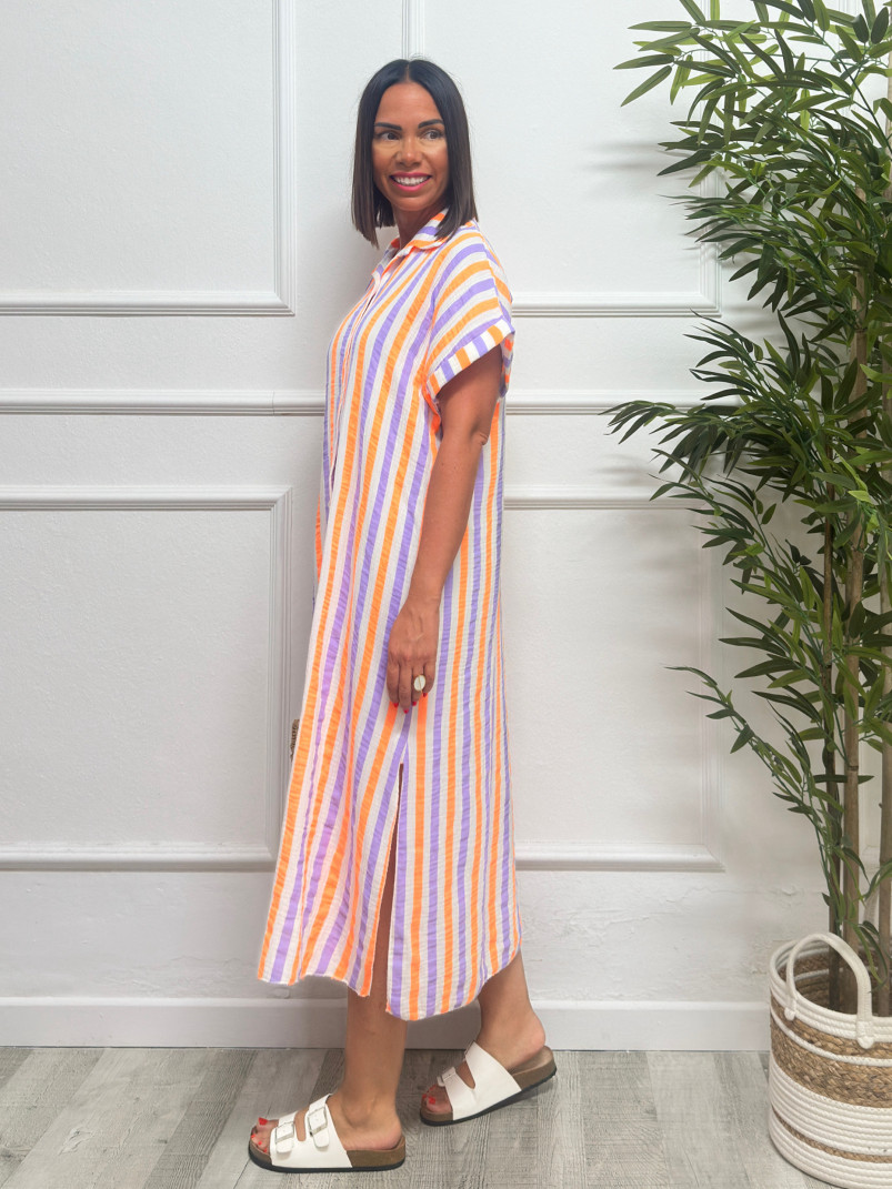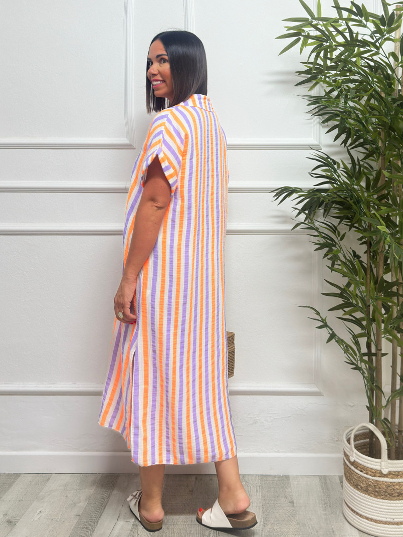 Vestido rayas lila/naranja