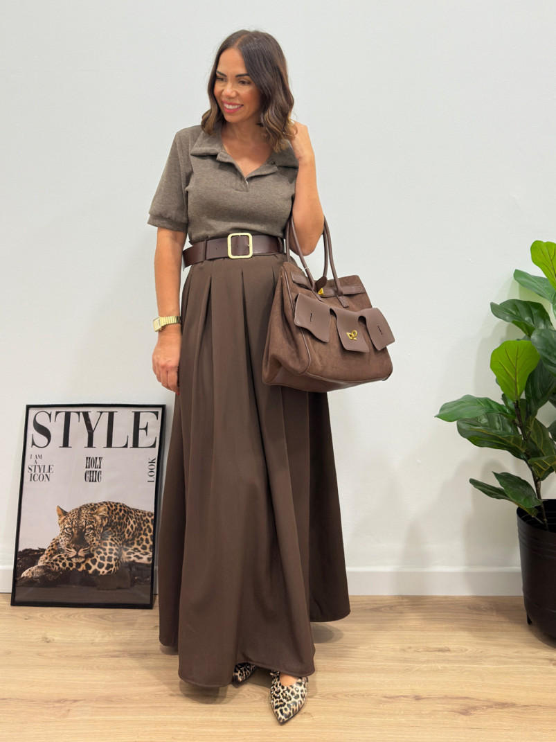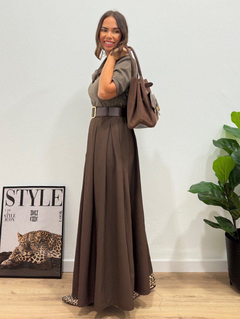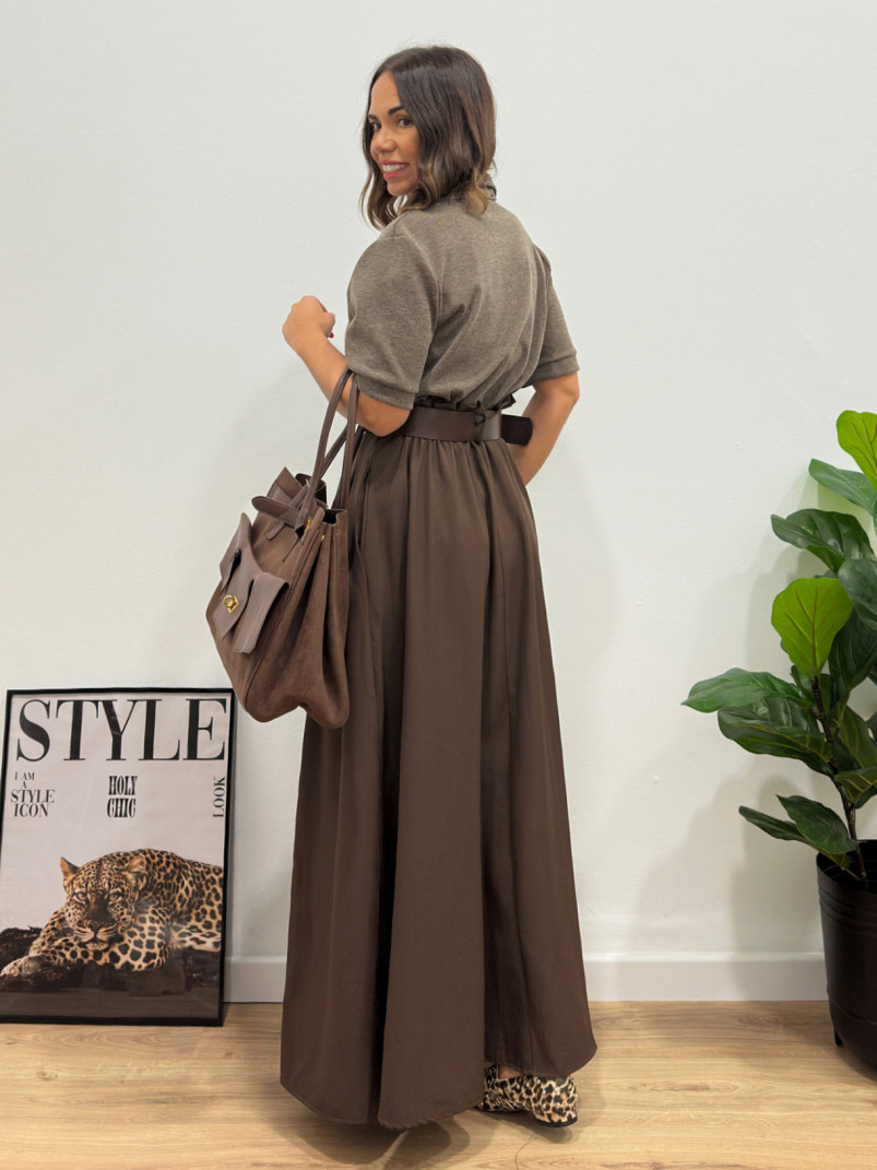 Vestido combinado marrón + cinturón