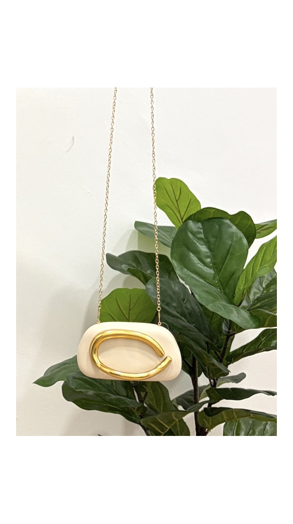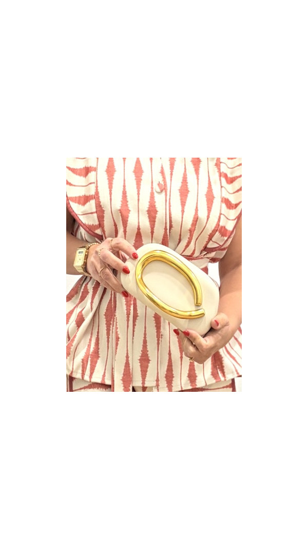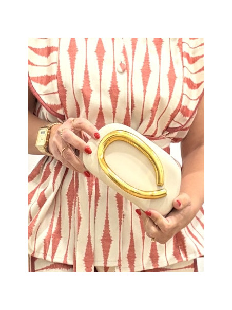 Cartera beig agarradera oro
